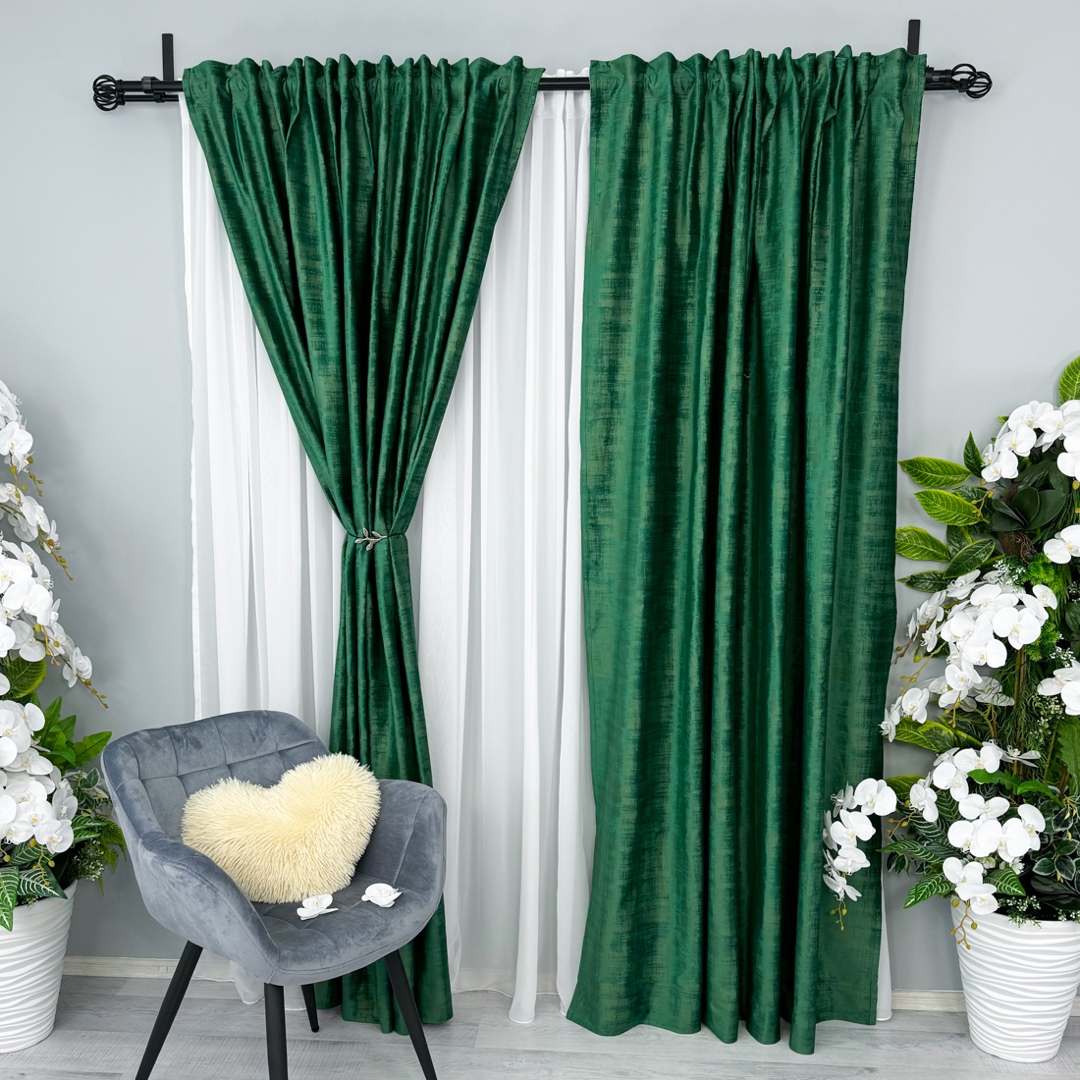Set 2 Draperii Catifea cu model Venti, Verde Smarald, 140cm latime x 260cm inaltime, cu tiv lat pt bara