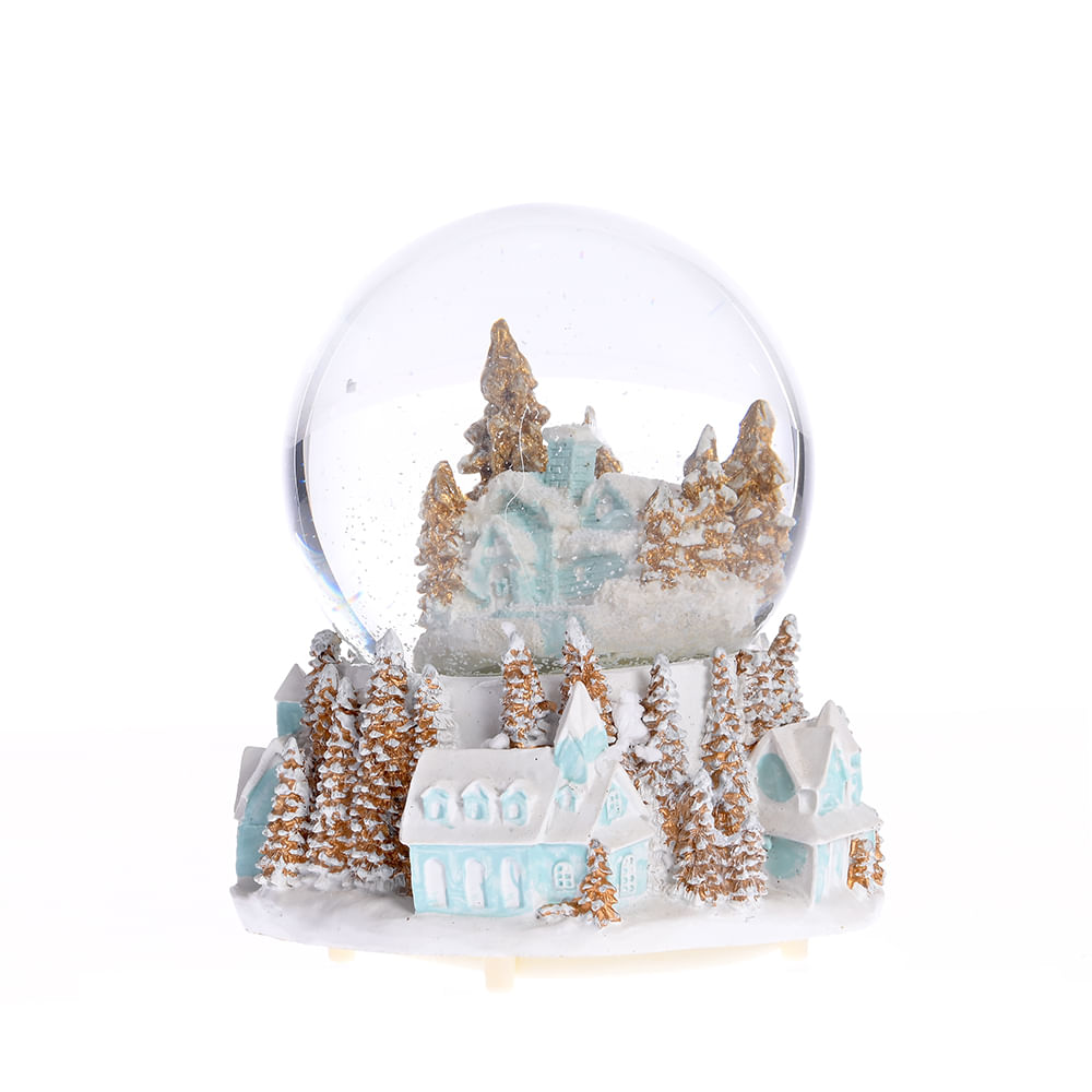 Glob apa Craciun cu led si zapada 16 cm