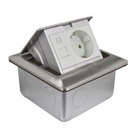 Doza pardoseala popup+doza protectie, metal, IP44, rectangulara, echipata cu priza 2m 2P+E+priza date 1m RJ45 UTP
