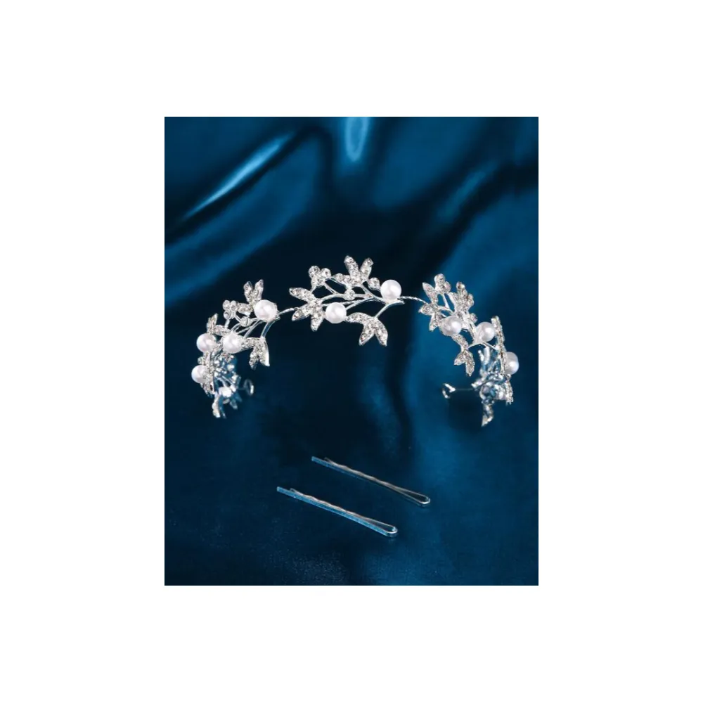 Bentita Mireasa cu Strasuri si Perle Artificiale, Argintie - 70502