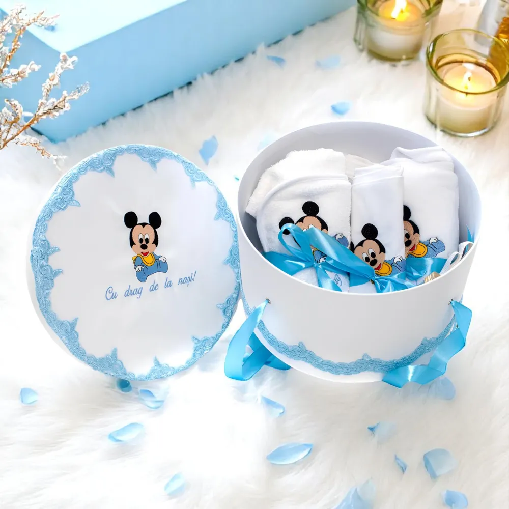 Trusou Botez cu 8 Piese Imprimat, Mikey Mouse, Culoare Albastru - BAB97