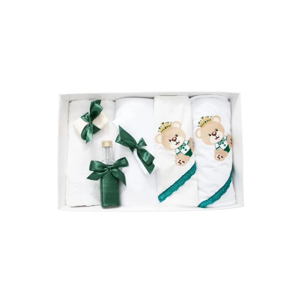 Trusou Botez 7 Piese Personalizat cu Broderie, Verde, Ursuletul Print - TB45
