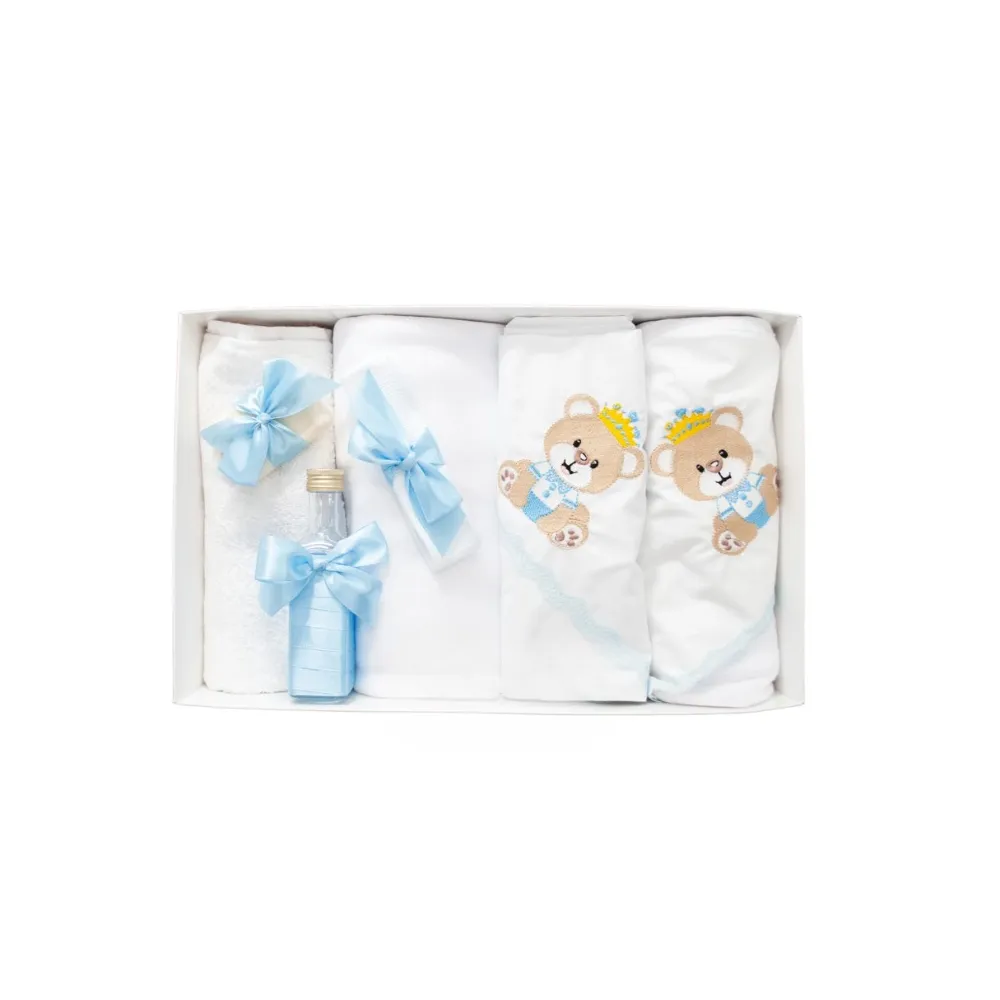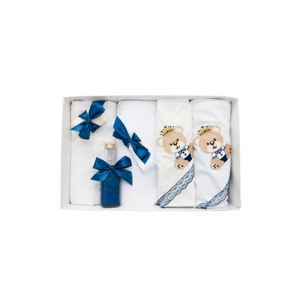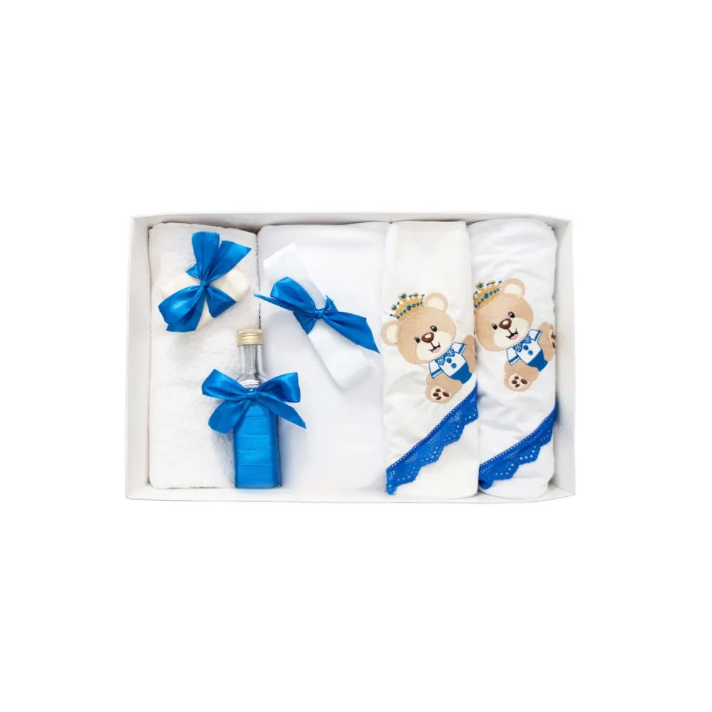 Trusou Botez 7 Piese Personalizat cu Broderie, Albastru, Ursuletul Print - TB48
