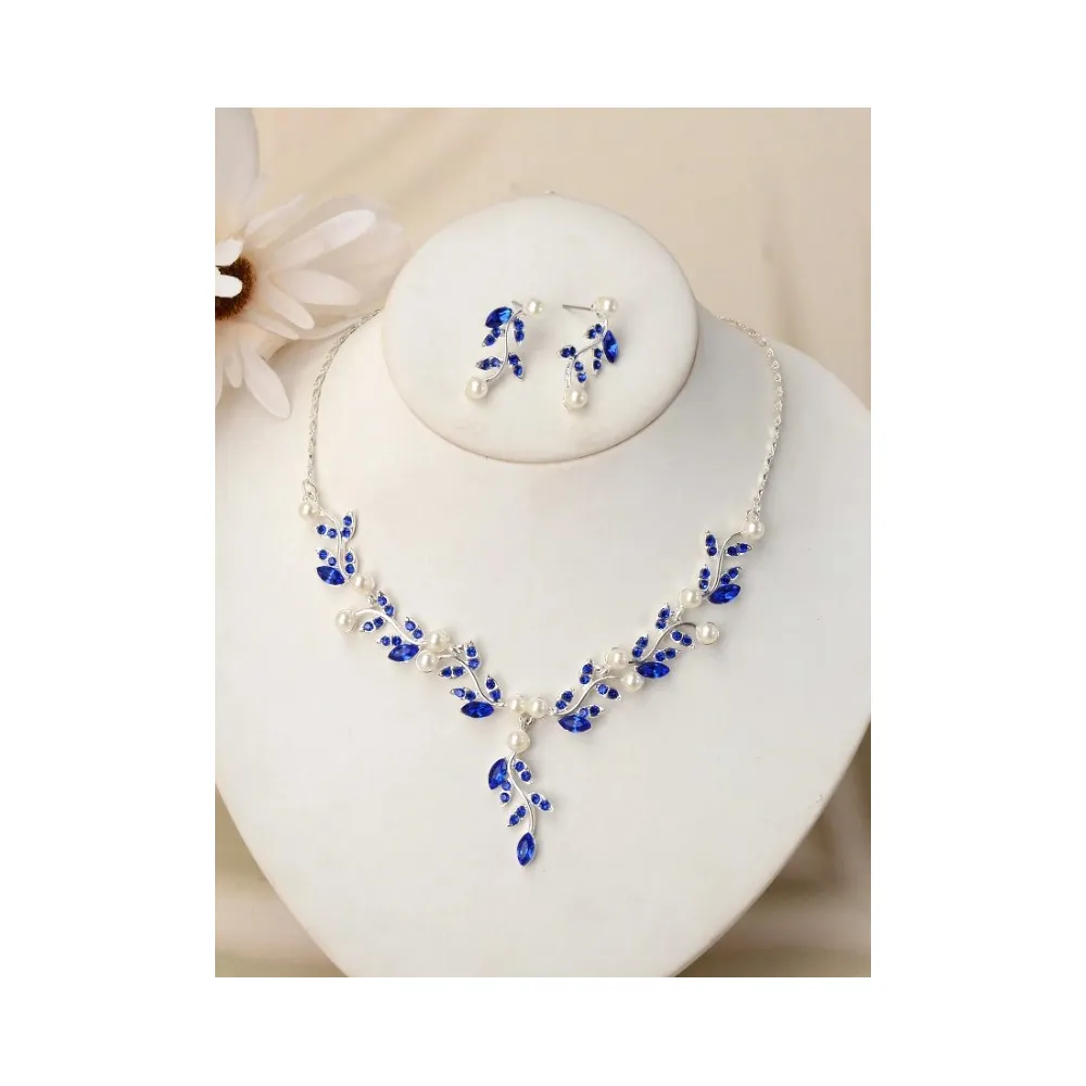 Set Bijuterii Cu Strasuri 3 Piese, Colier si Cercei Argintiu cu Albastru - 97958