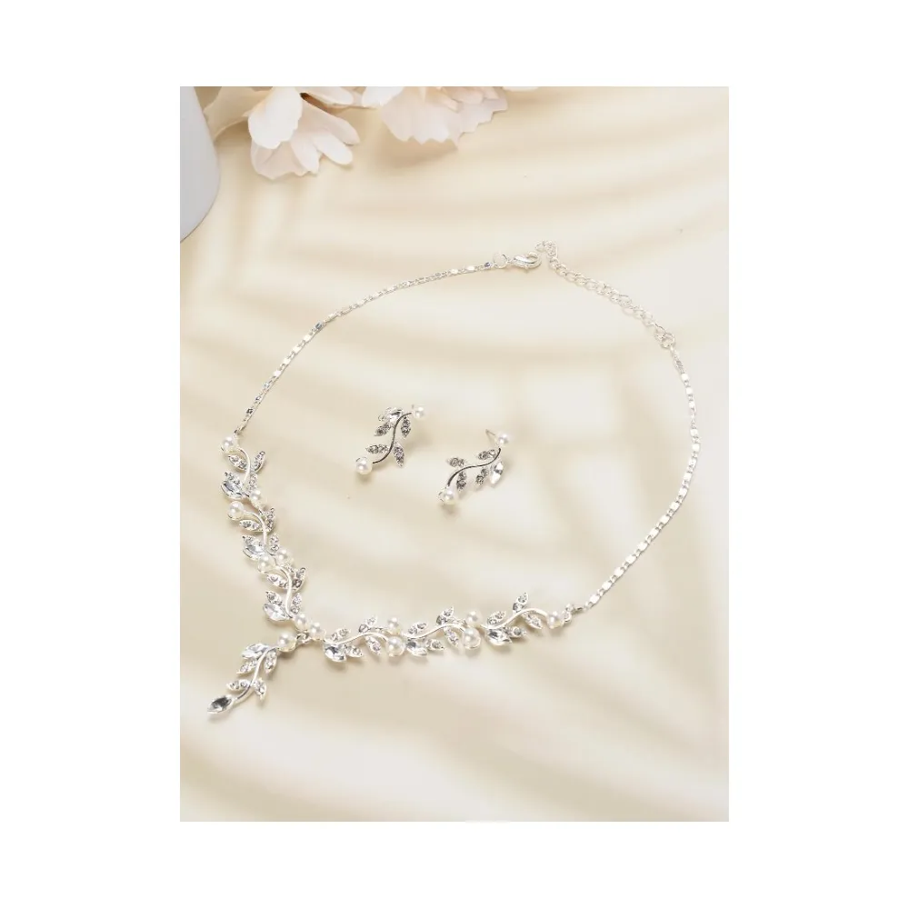 Set Bijuterii Cu Strasuri 4 Piese, Colier, Cercei si Bratara , Argintiu - 93011
