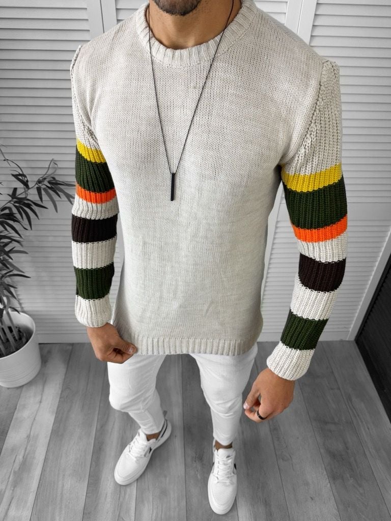 Pulover barbati gros slim fit bej CU MIC DEFECT DEF3588 O2-4.2