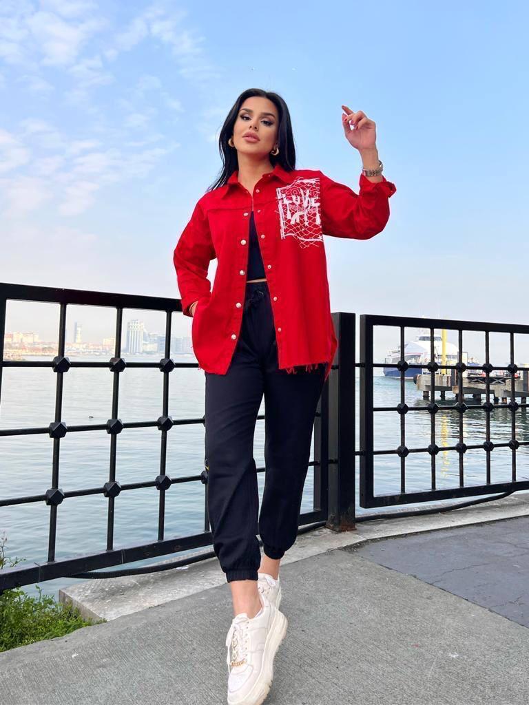 Camasa dama fara maneci alba cu model rosu - cod 38407