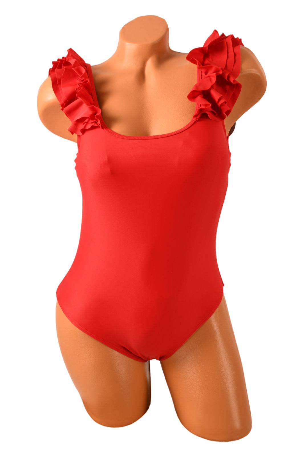 Costum de baie dama, 2 piesee, cu model imprimat Alb/Rosu