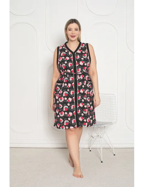 Halat fara maneca, cu imprimeu, închidere cu nasturi, pentru dama, negru
