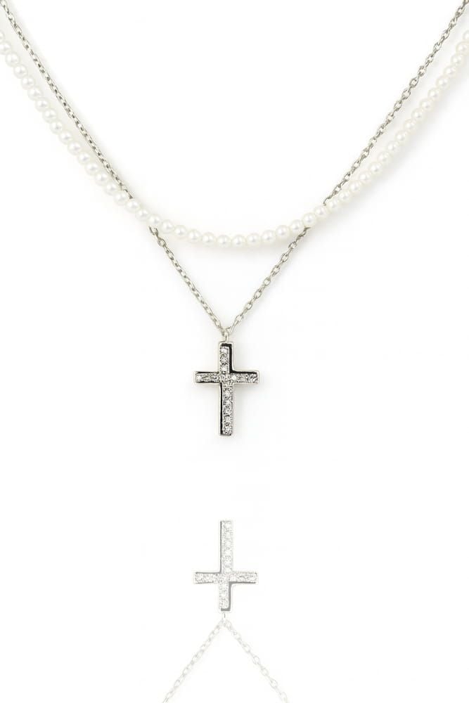 Colier dublu din argint 925 cu perle si pandantiv cruce A10N39383 - Engross