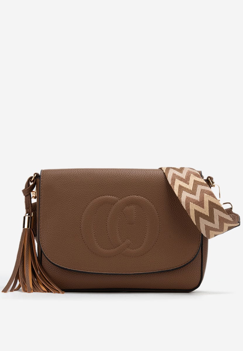 Geanta dama crossbody, cu bareta din material textil imprimat cu motive