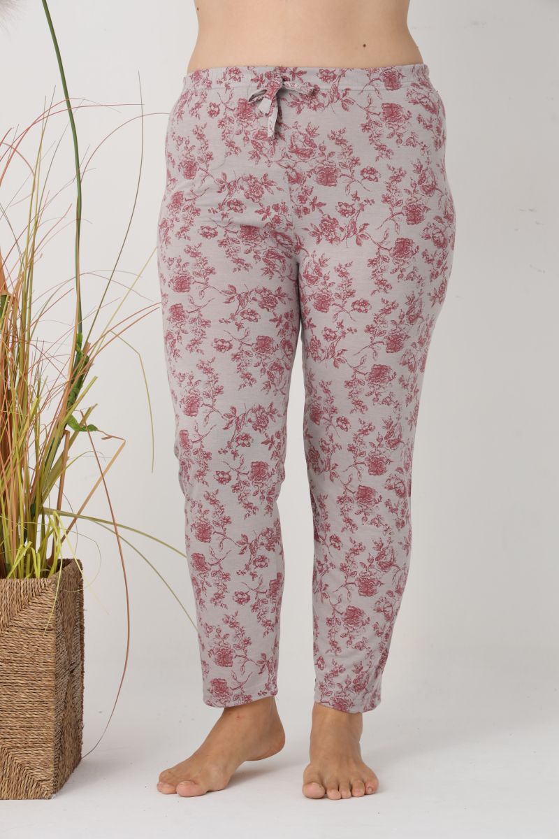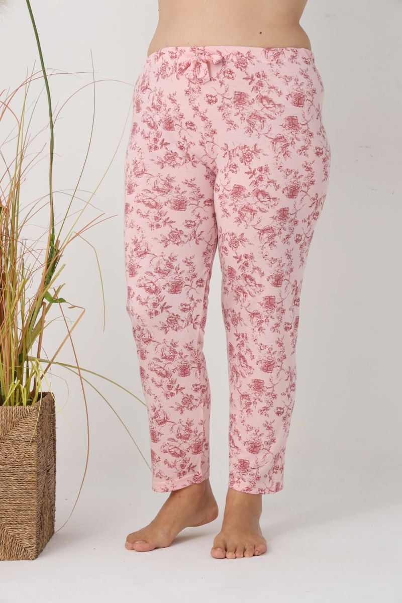 Pantaloni de Pijama Dama Lungi,Big Size,Culoare Roz cu Trandafir Rosu, Engros