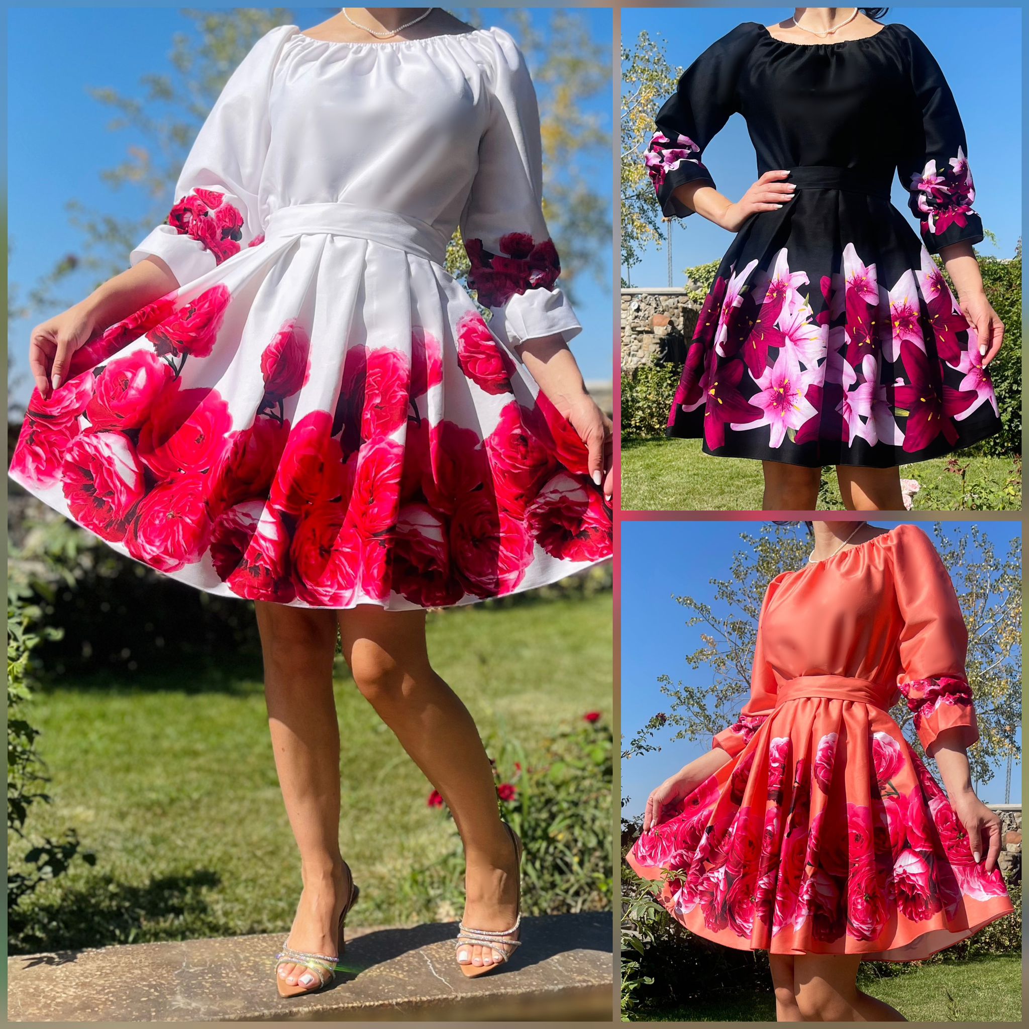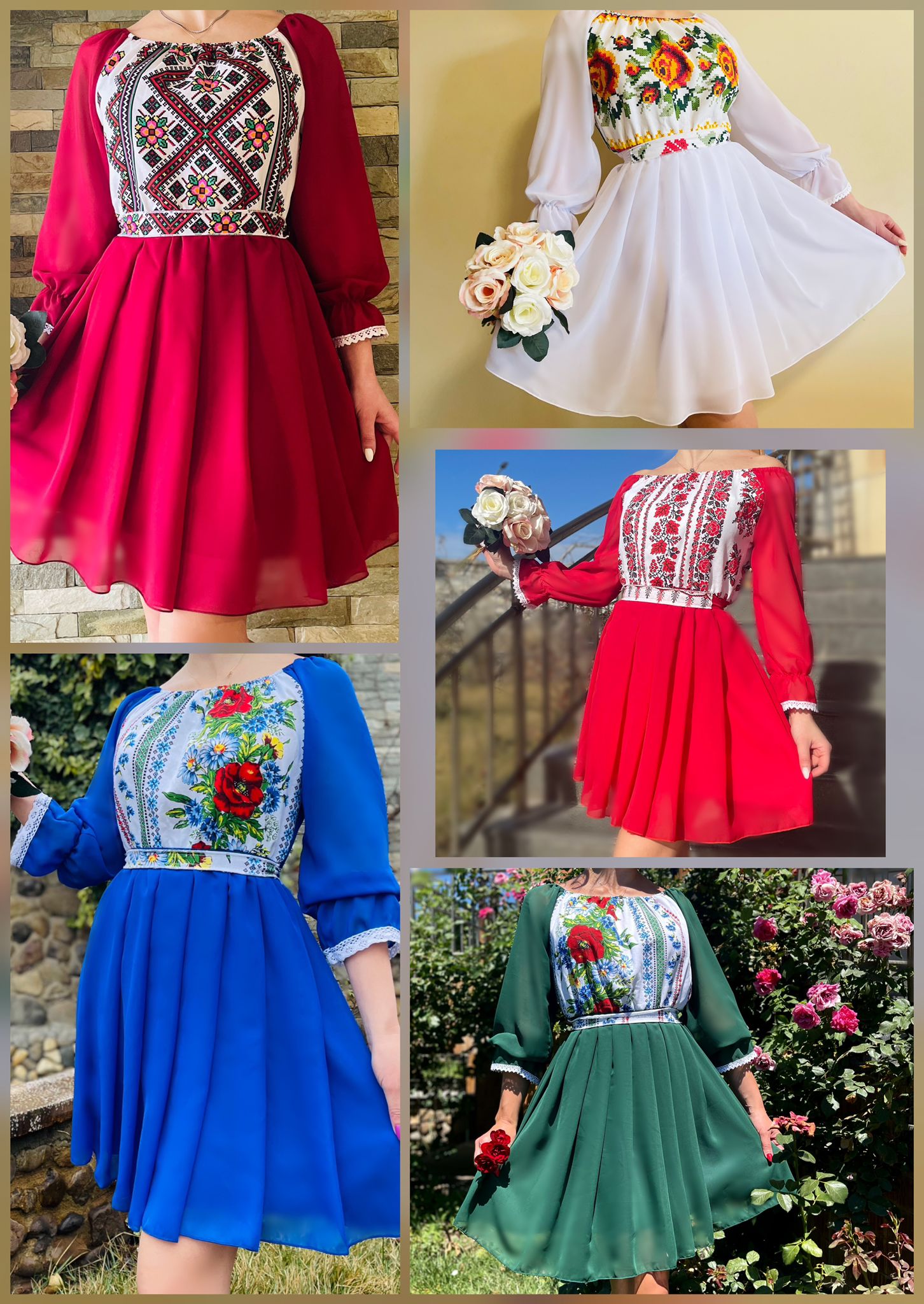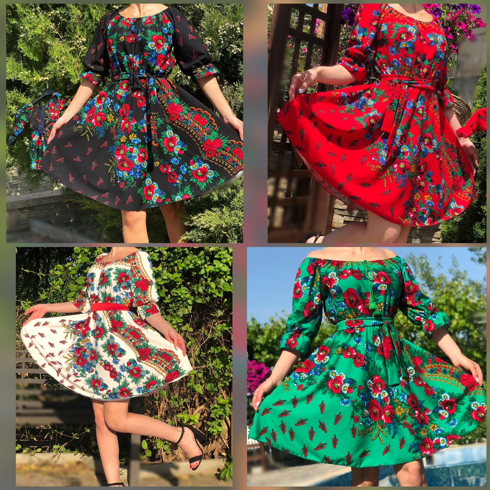 Rochie scurta Engros pentru femei, mix culori ,cu model traditional imprimat, tafta