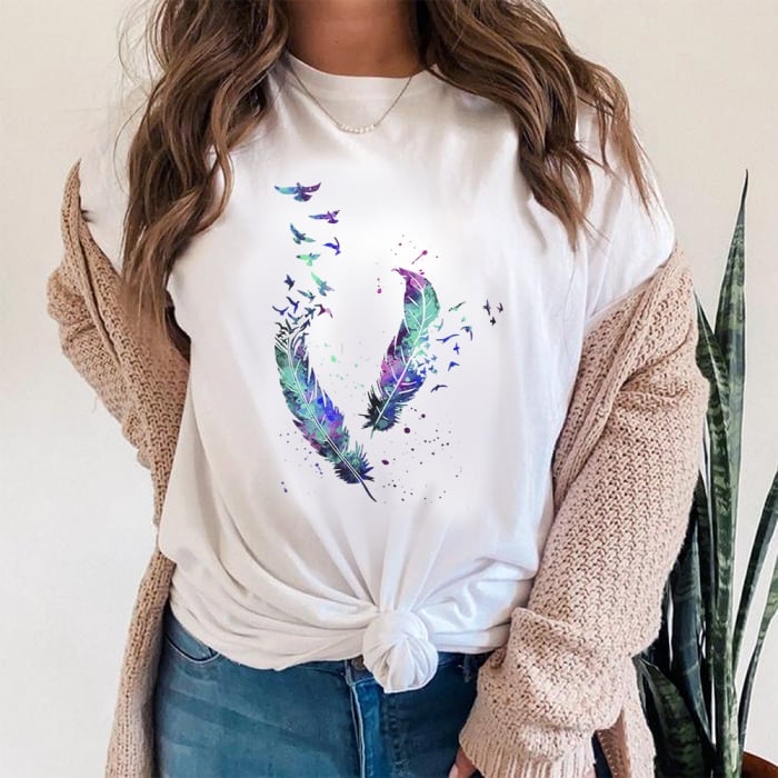 Tricou Dama Alb Magic Feathers Engros