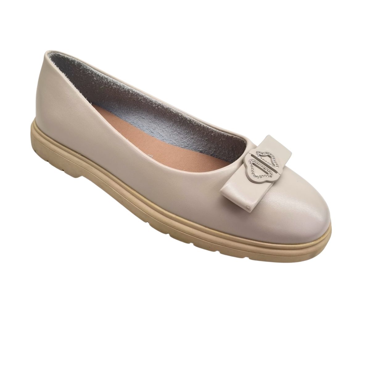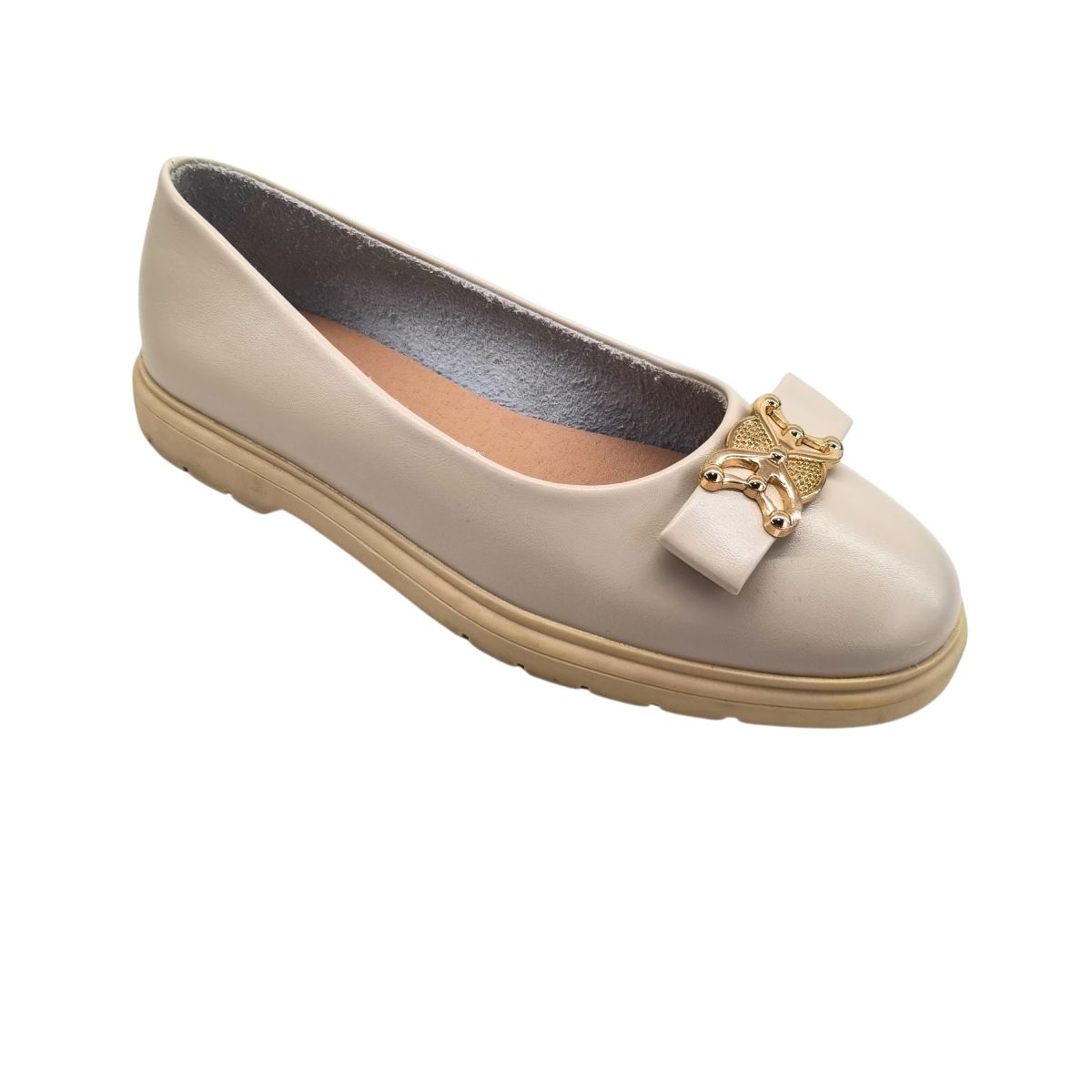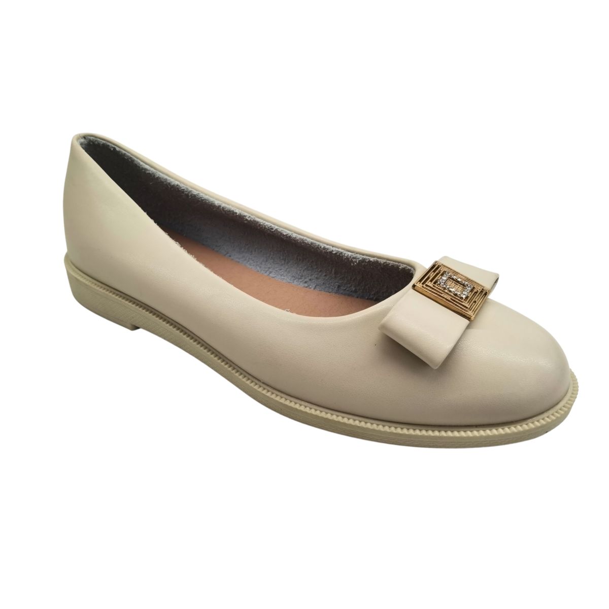 Balerini Casual Eleganti Dama, Funda 3D cu Accesoriu Metalic Stralucitor, Piele Ecologica, Engross, Marimi 36-40, 8buc/bax bej