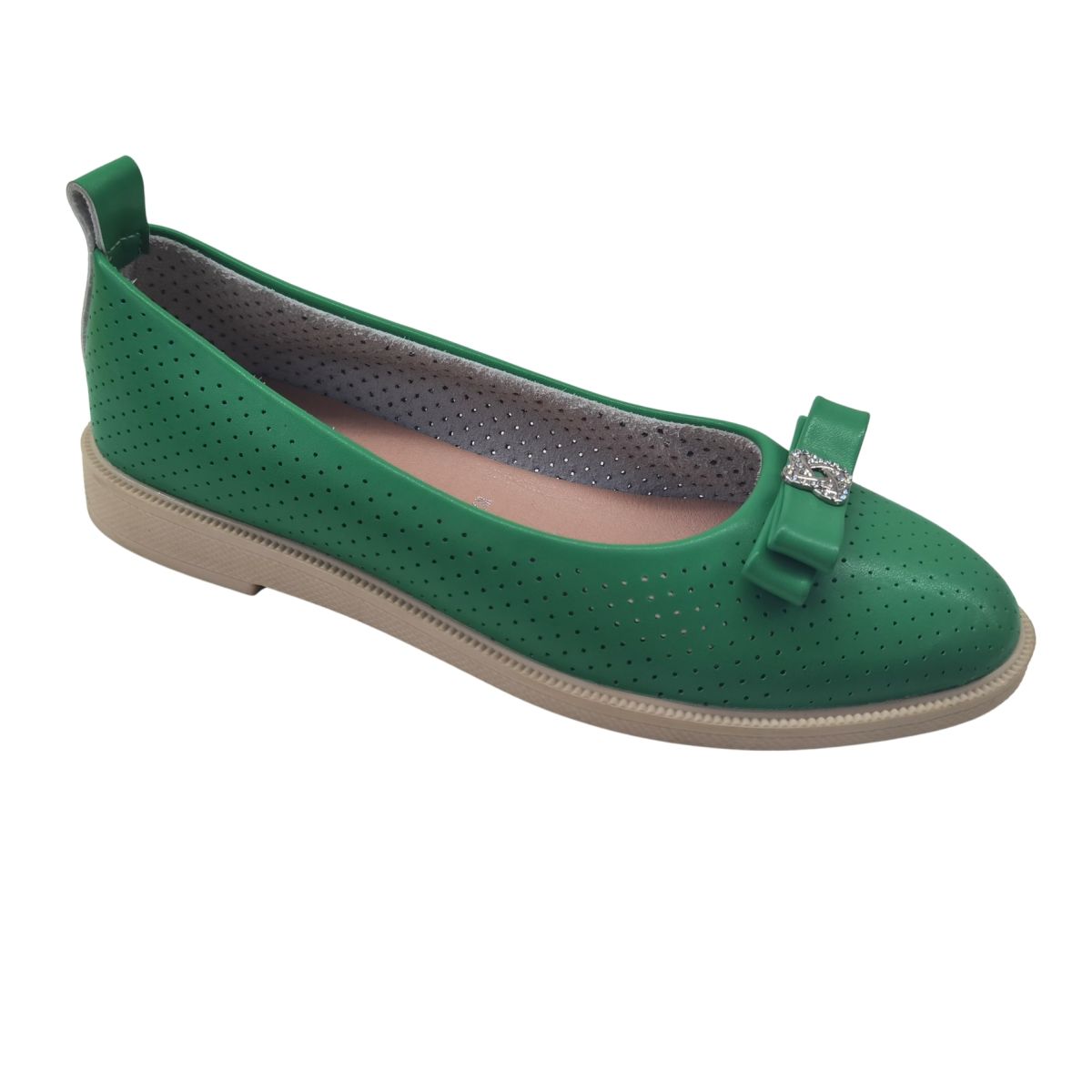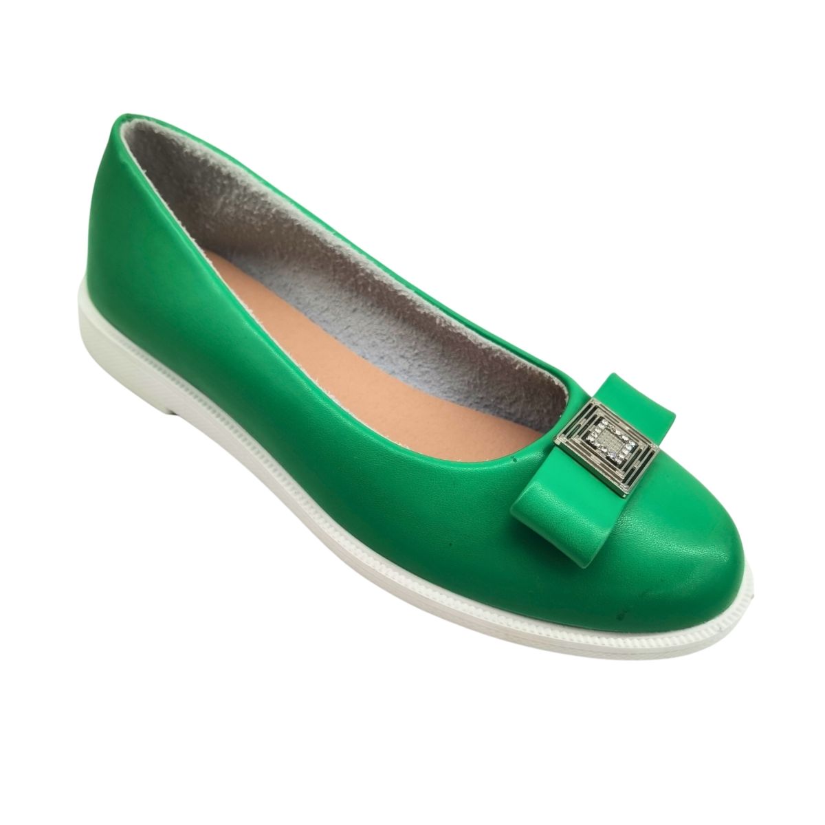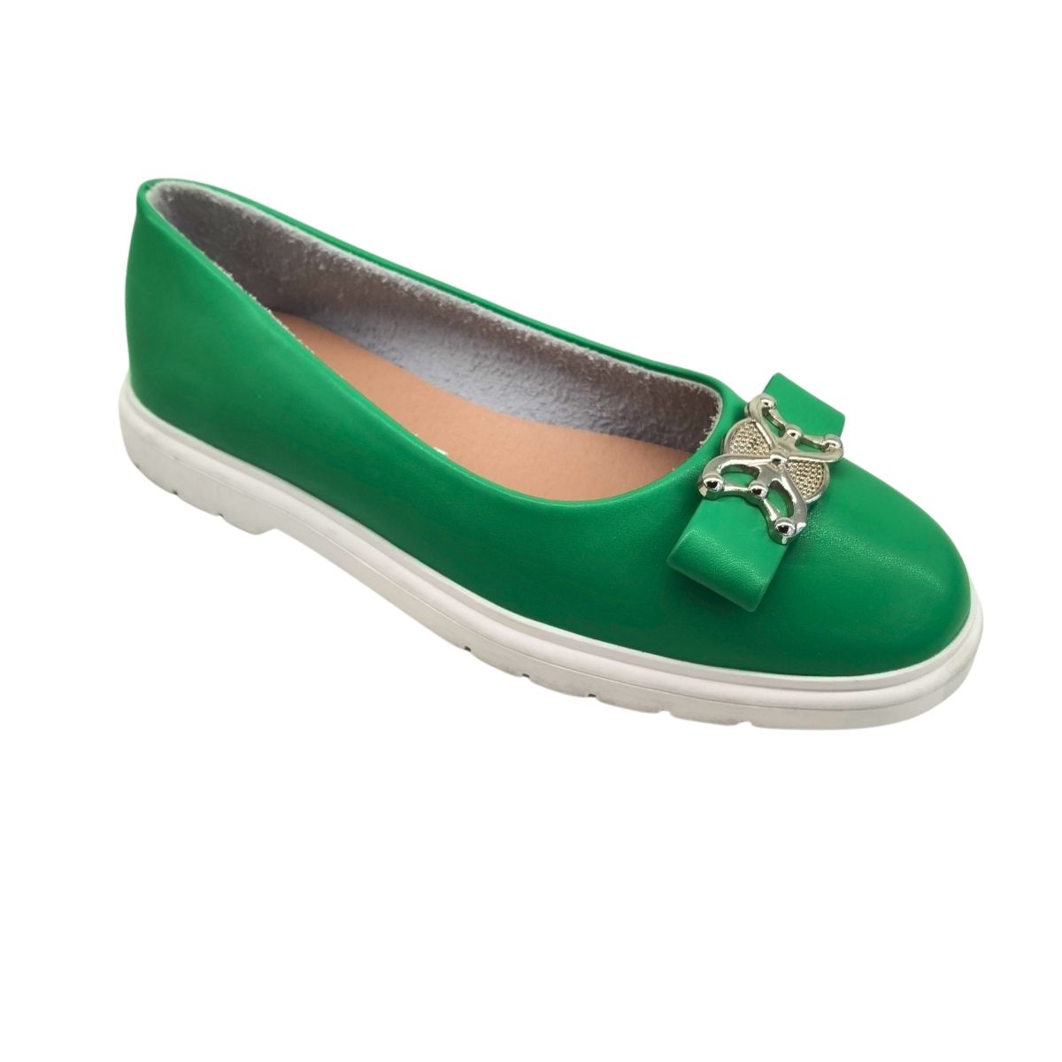 Balerini Casual Dama cu Talpa Joasa, Piele Ecologica, Accesoriu Metalic Stralucitor, Engross, Marimi 36-40, 8buc/bax verde