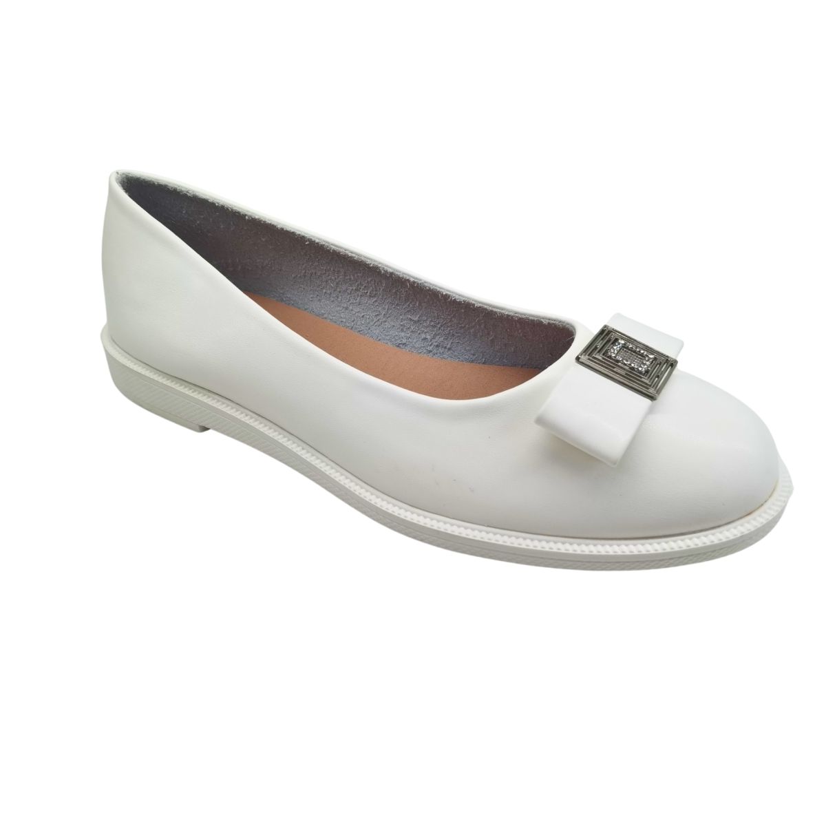 Balerini Dama cu Talpa Joasa, Piele Ecologica, Accesoriu 3D, Engross, Marimi 36-40, 8buc/bax alb