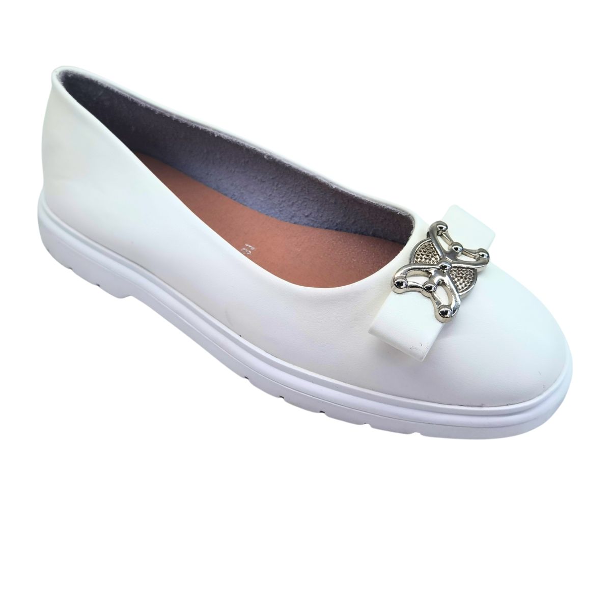 Balerini Casual Dama cu Talpa Joasa, Piele Ecologica, Accesoriu Metalic Stralucitor, Engross, Marimi 36-40, 8buc/bax alb