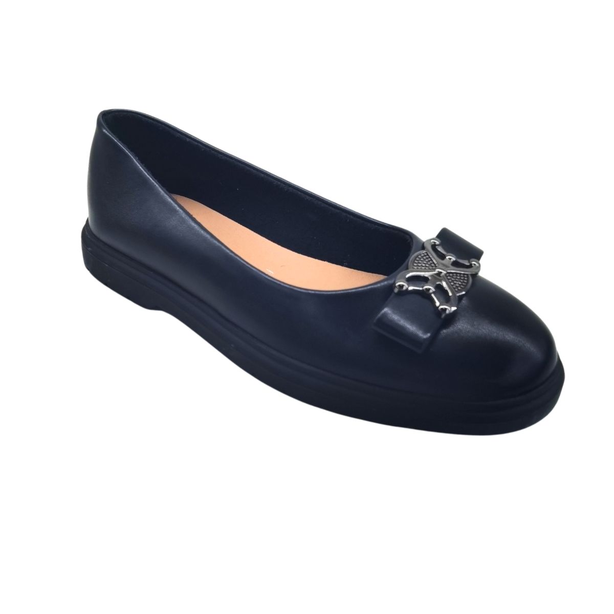 Balerini Casual Dama cu Talpa Joasa, Piele Ecologica, Accesoriu Metalic Stralucitor, Engross, Marimi 36-40, 8buc/bax negru