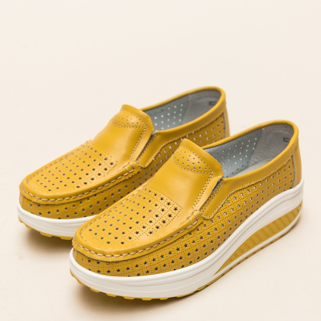 Pantofi casual Engros din piele naturala dama, Bicaz Galben