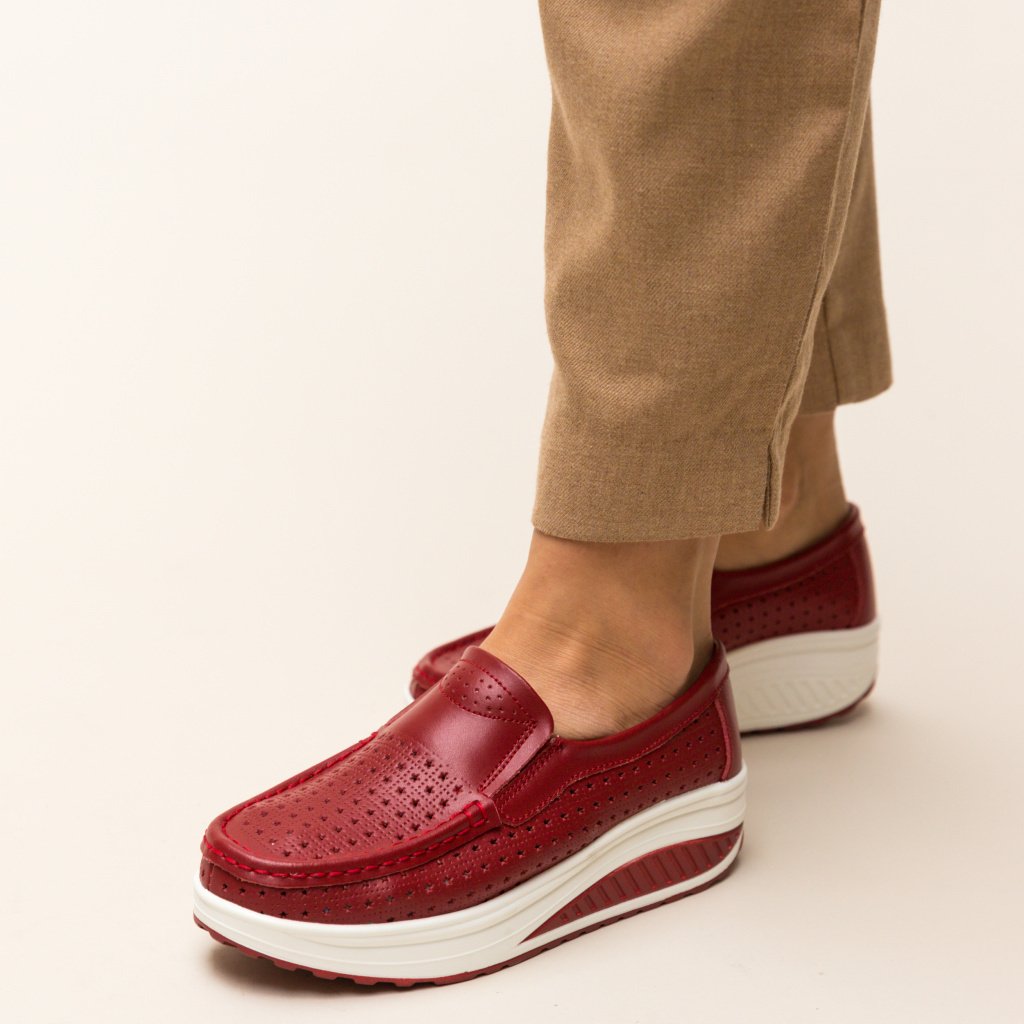 Pantofi casual Engros din piele naturala dama, Bicaz Rosu