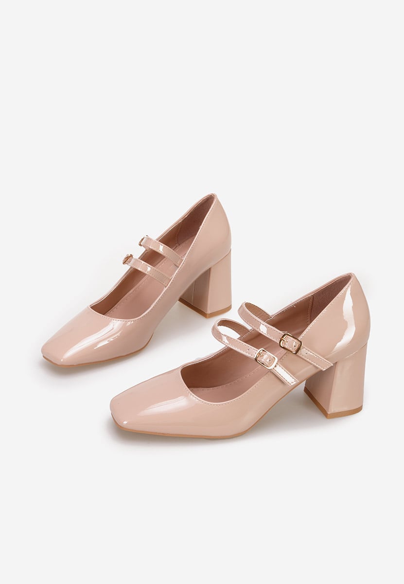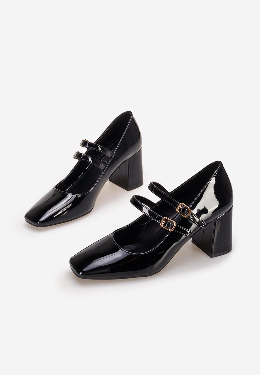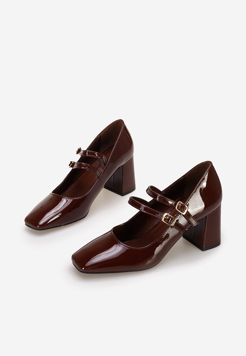 Pantofi de dama engros, din piele ecologica lacuita, cu toc gros