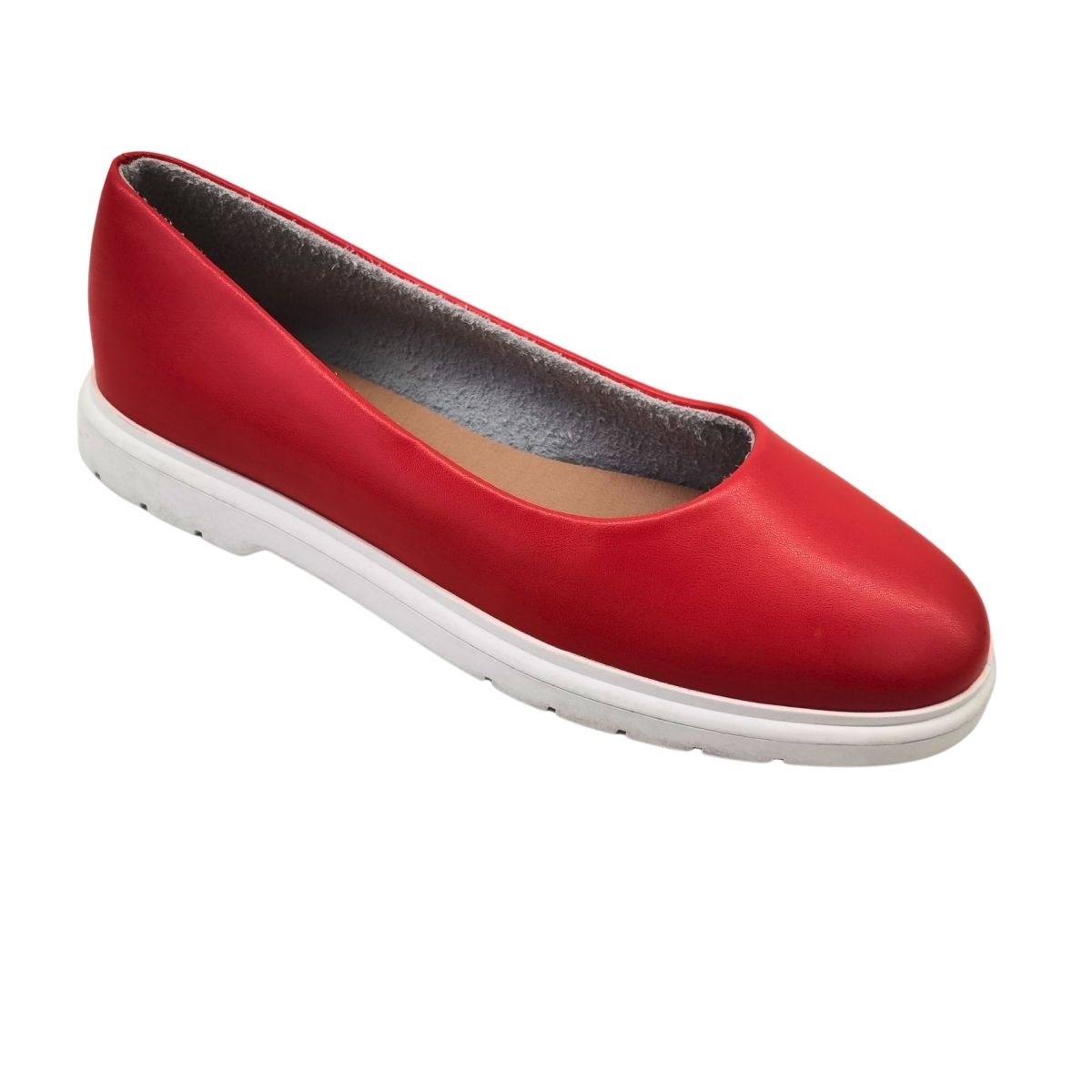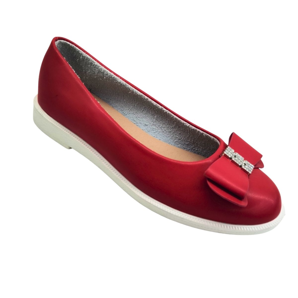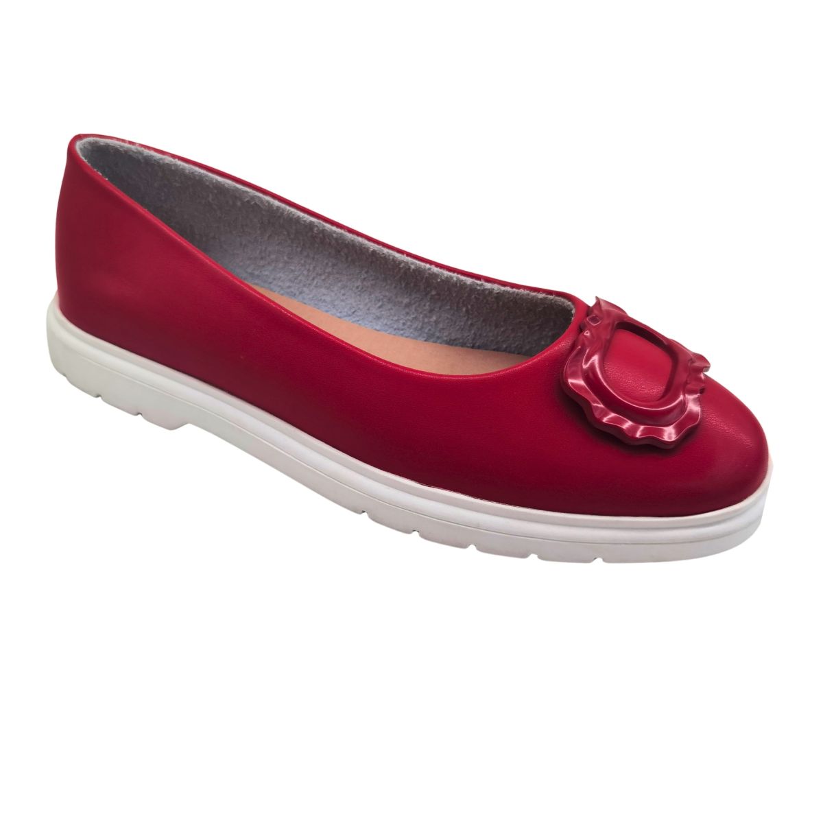 Balerini Casual Eleganti Dama, Funda 3D cu Accesoriu Metalic Stralucitor, Piele Ecologica, Engross, Marimi 36-40, 8buc/bax rosu