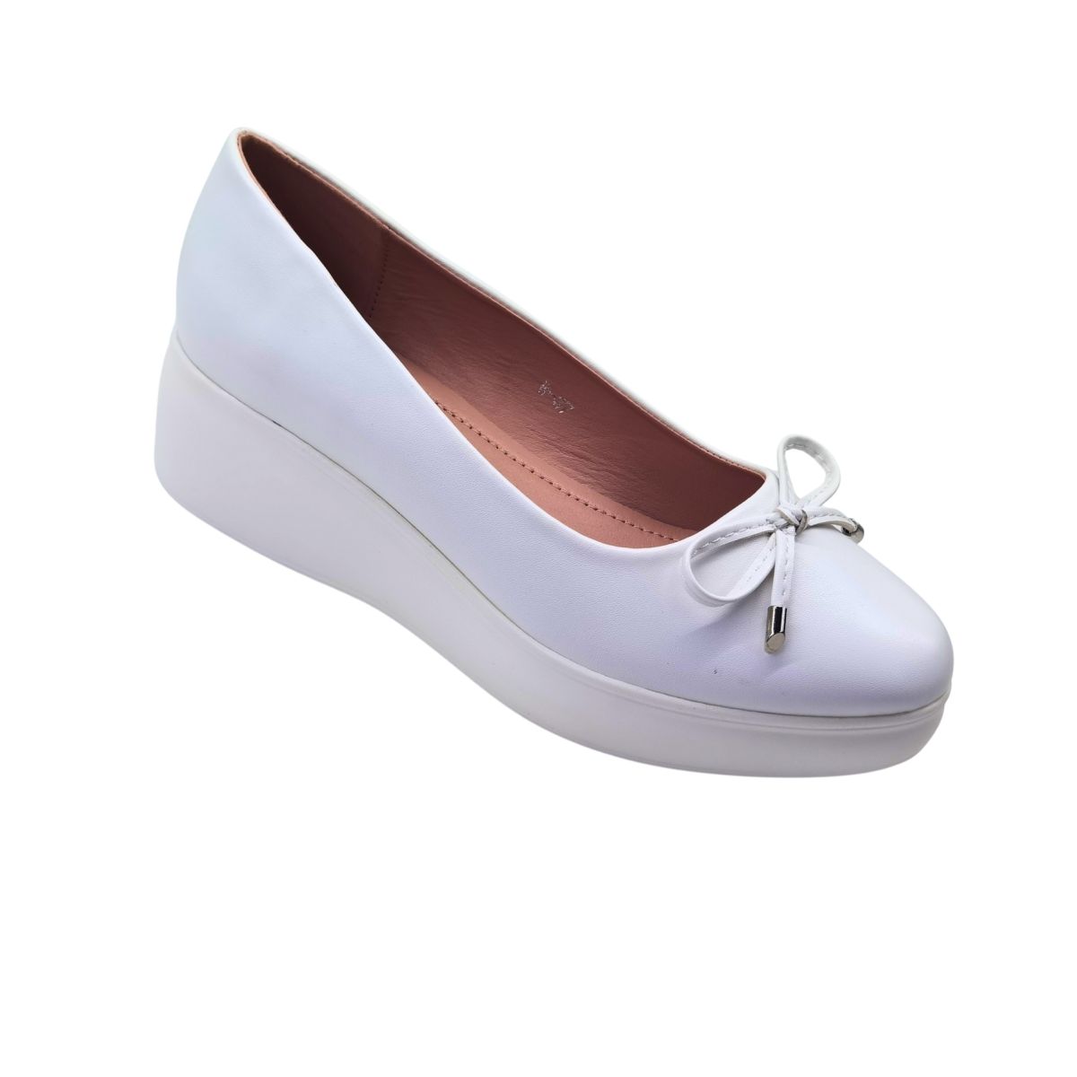 Balerini Dama cu Talpa Joasa, Piele Ecologica, Funda cu Accesoriu Metalic Stralucitor, Engross, Marimi 36-40, 8buc/bax alb