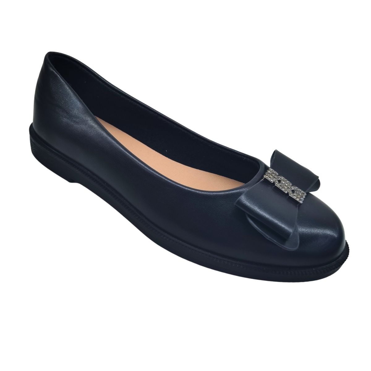 Balerini Casual Eleganti Dama, Funda 3D cu Accesoriu Metalic Stralucitor, Piele Ecologica, Engross, Marimi 36-40, 8buc/bax negru