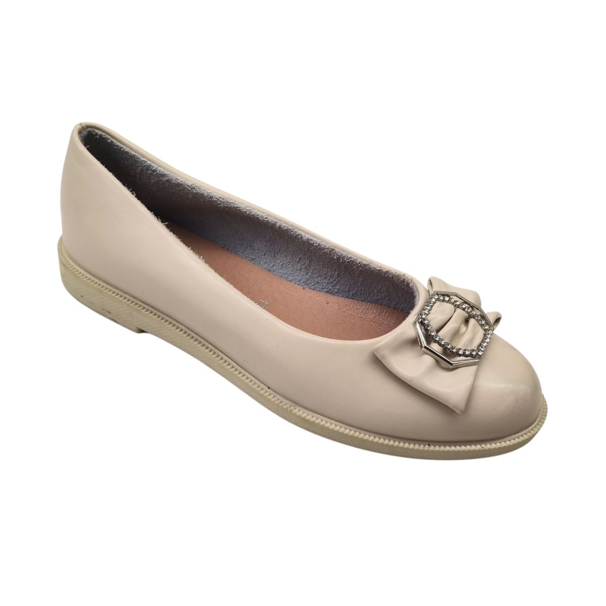 Balerini Dama cu Talpa Joasa, Piele Ecologica, Accesoriu 3D, Engross, Marimi 36-40, 8buc/bax bej