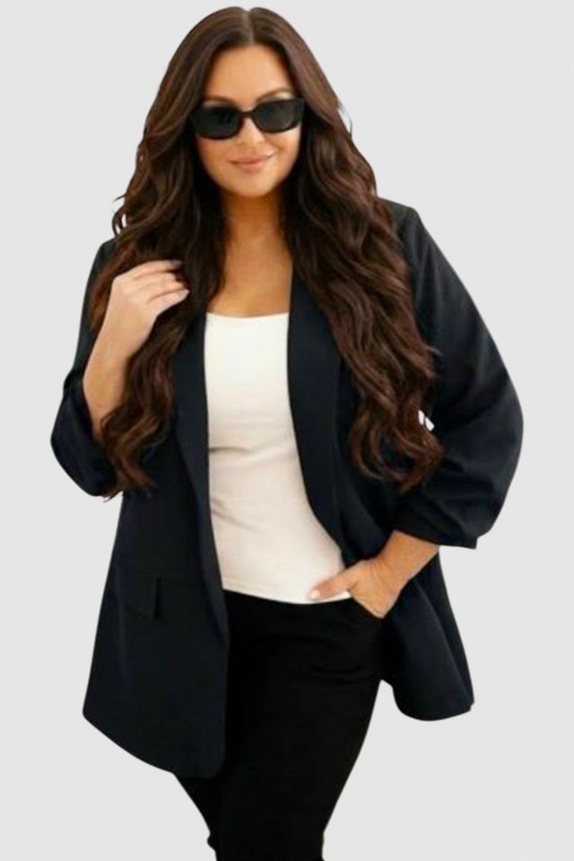 Sacou casual BLUMY, cu lungime medie si clapete, NEGRU, Marime XL/2XL