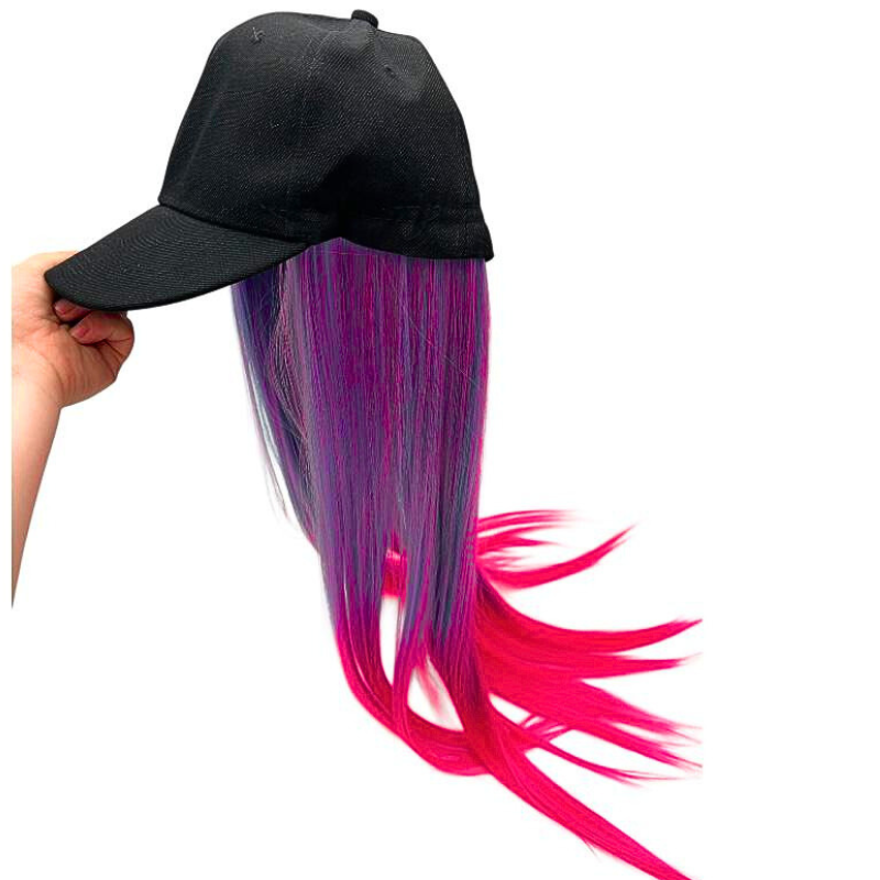 Sapca cu Peruca Roz Degrade – Look Urban, Cosplay, Party, Accesoriu Fashion – Lungime Plete ~60cm, En-gros
