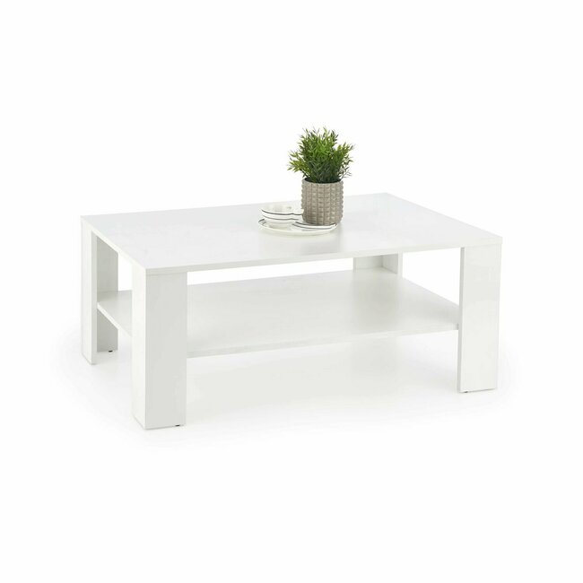 Măsuță cafea Kwadro, blat lucios, MDF laminat, 110x65x53 cm, alb