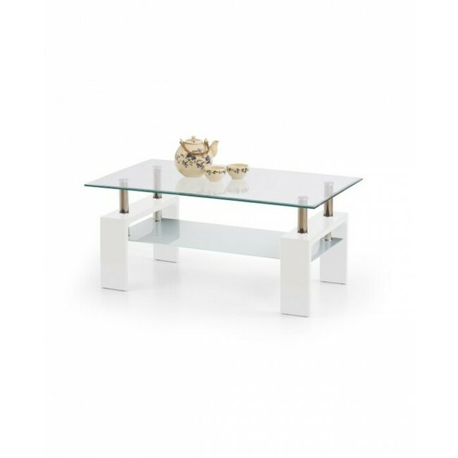Măsuță de cafea Dalila, blat din sticlă securizată și cadru MDF, design modern, 110x60x45 cm, alb