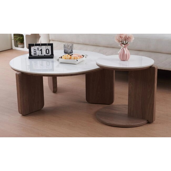 Set 2 măsuțe de cafea Catania LC alb/nuc