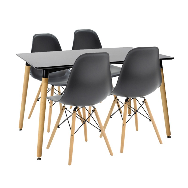 Set de 5 buc masa si scaune Balou-Caron MDF si plastic PP in nuanta negru-natural 100x100x75 cm