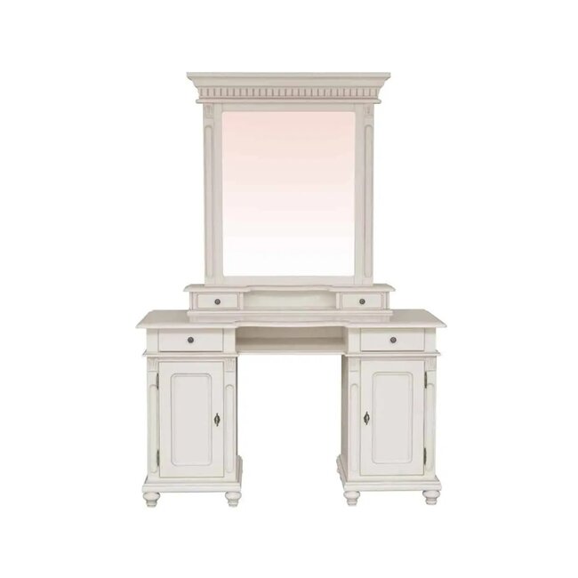 Masă de toaletă Floris, design clasic, lemn masiv și MDF, 134x50x78 cm, crem patinat