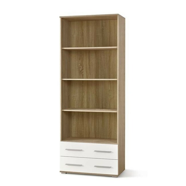 Bibliotecă Lima REG3, structură modernă, PAL laminat lucios, 77x40x200 cm, alb-Sonoma