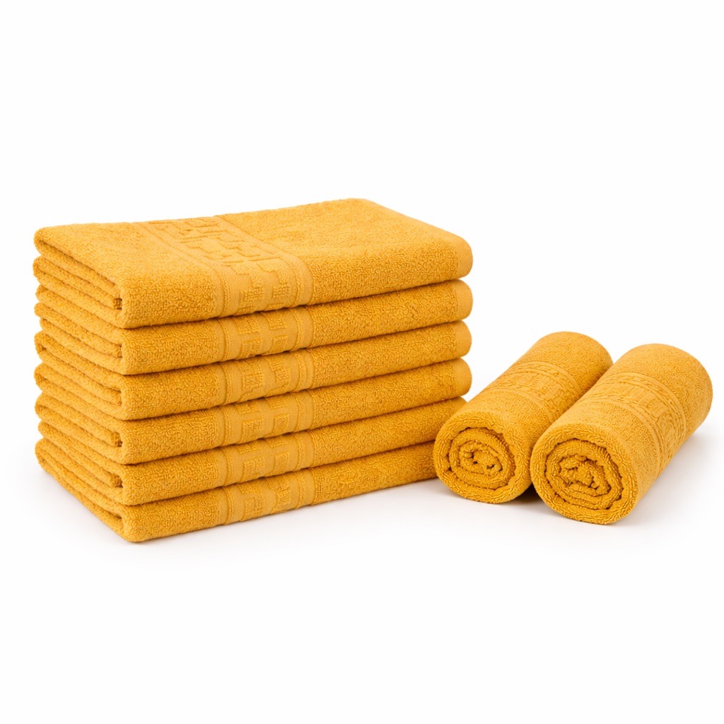 Set 5 prosoape medii 50x90cm, din 100% bumbac pakistanez, 500g, Mustar