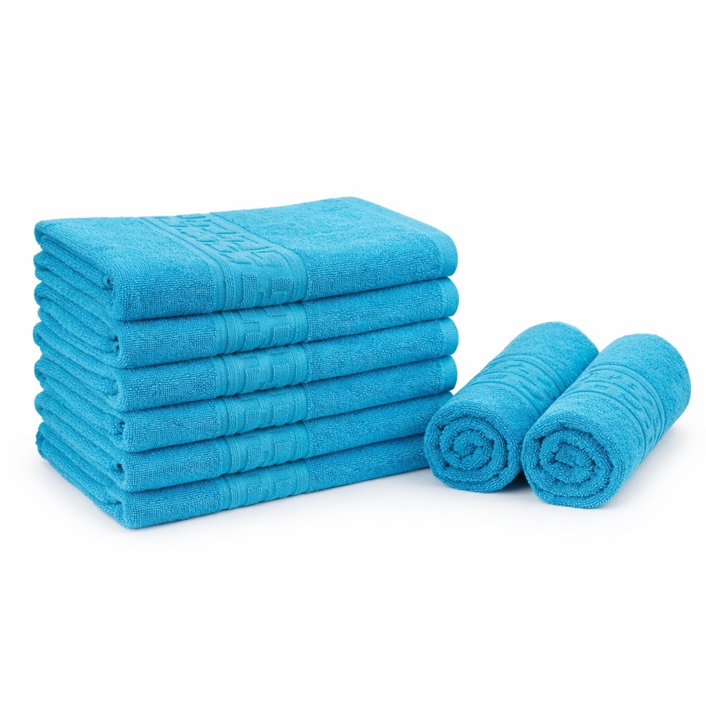 Set 8 prosoape mici 30x50cm, din 100% bumbac pakistanez, 400g, Line, Turquoise