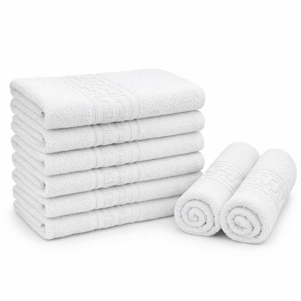 Set 8 prosoape mici 30x50cm, din 100% bumbac pakistanez, 500g, Alb