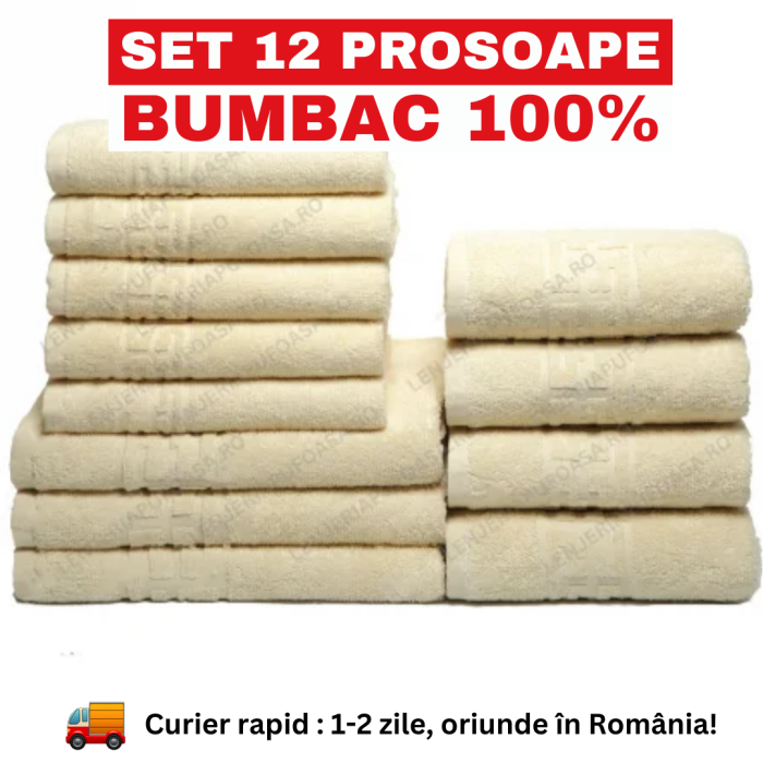 Set 12 Prosoape Maini Fata Corp, Bumbac 100%, 550g m ² - Crem