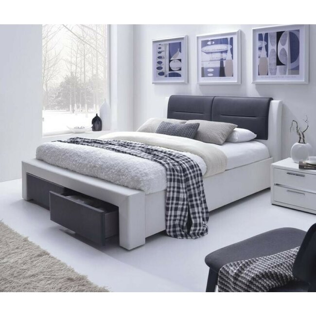 Pat Modena 2 cu sertare, design modern, piele ecologică, 160x200 cm, alb