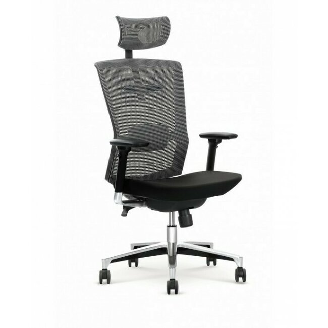 Scaun ergonomic Admiral negru/gri cu funcție MULTIBLOCK și tetieră reglabilă