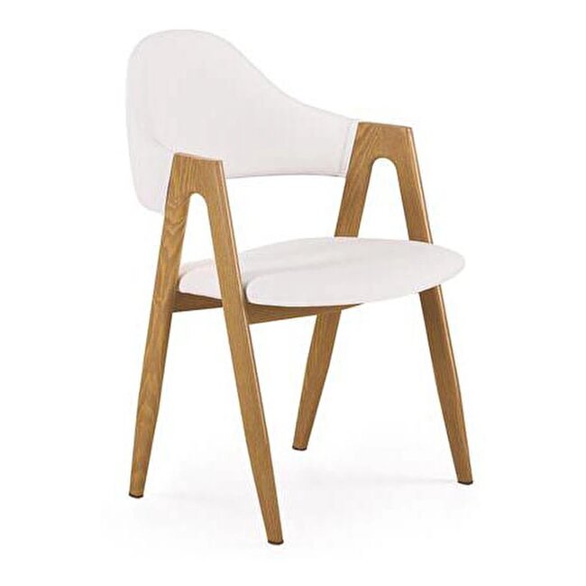 Scaun K66, design clasic și cadru stabil, material textil, 45x48x93 cm, alb / stejar