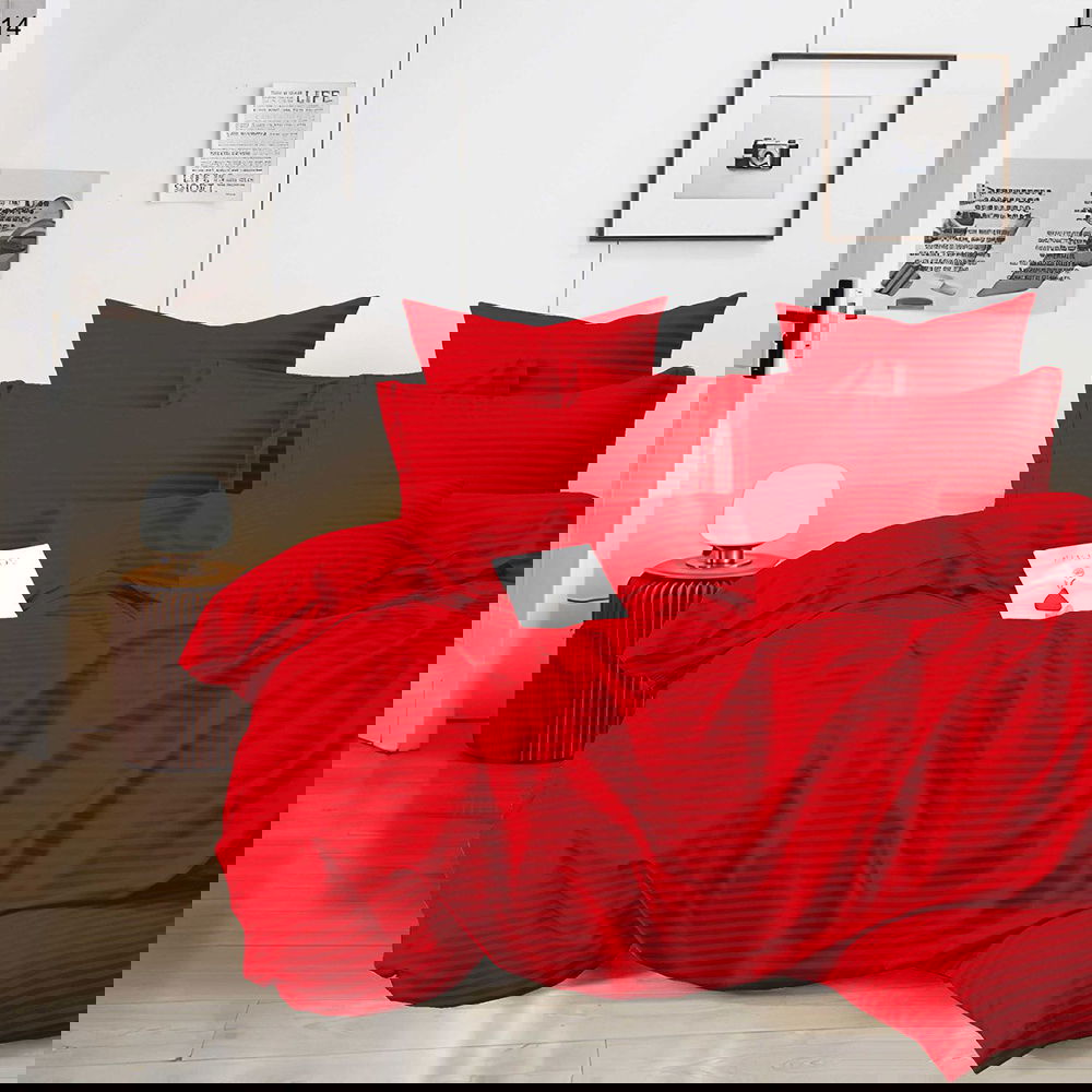Lenjerie de Pat Damasc Premium 6 Piese - Rosu - LDS_H067