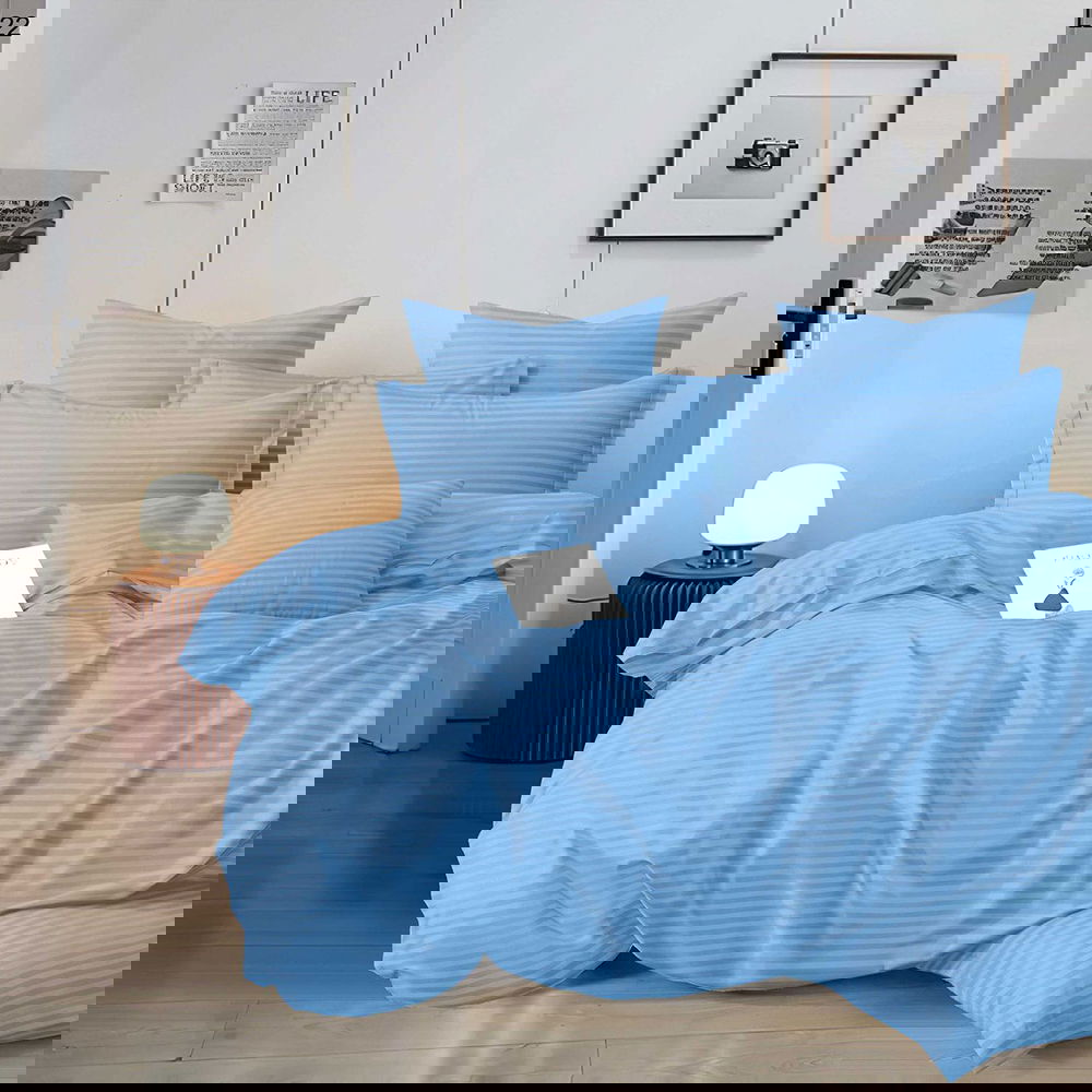 Lenjerie de Pat Damasc Premium 6 Piese - Bleu Ciel - LDS_H074B