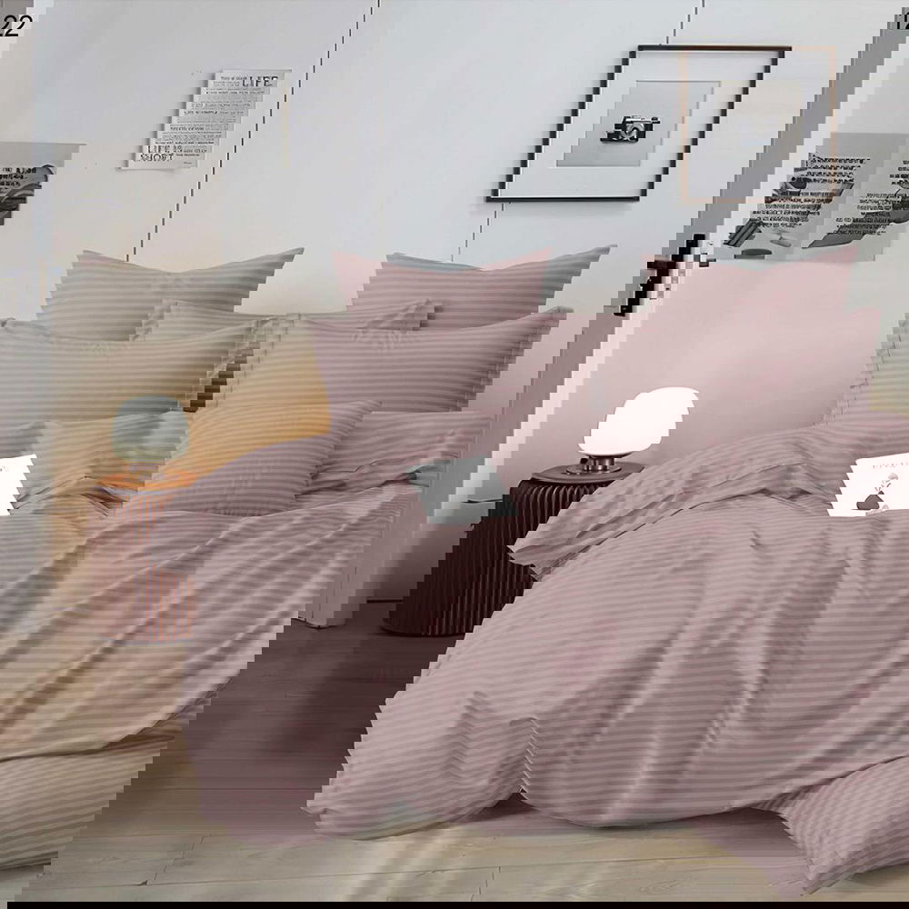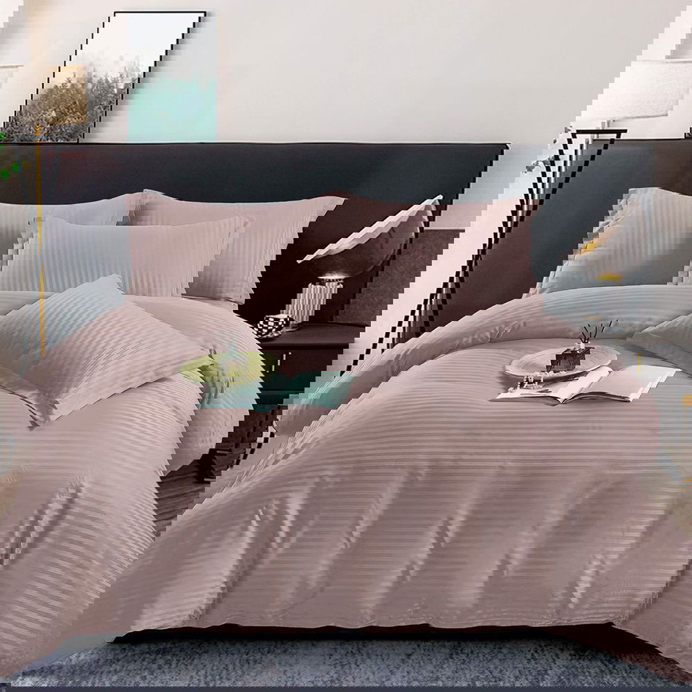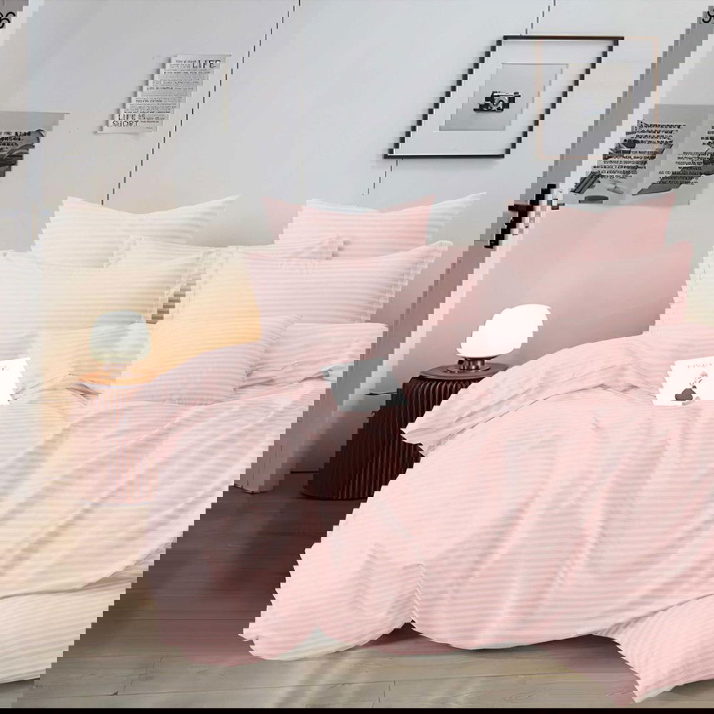 Lenjerie de Pat Damasc Premium 6 Piese cu Cearceaf Elastic - Roz Deschis - LDES_H033