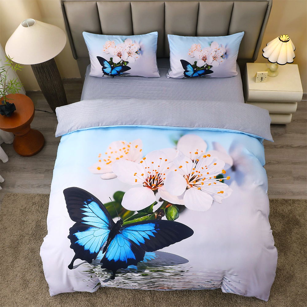 Lenjerie Fluturi si Flori Desenate din Finet 5D cu Cearceaf Elastic 160/180x200cm, 4 Piese - LFDEB_A112C