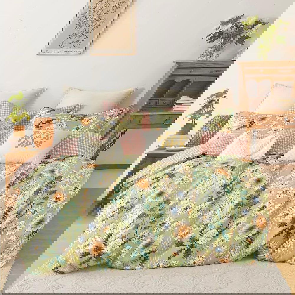 Lenjerie din Finet 90/120x200 - 4 Piese - Verde cu Flori de Camp - LFSGS_E021